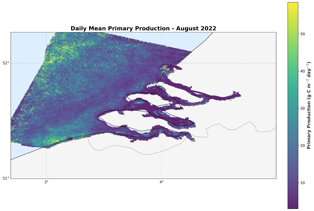 Aquaculture and fisheries companies are currently making the transition from experience based to data driven decision making. We provide ecological status maps, including for instance Primary Production information. Together with our partners, we also work on shellfish growth models.